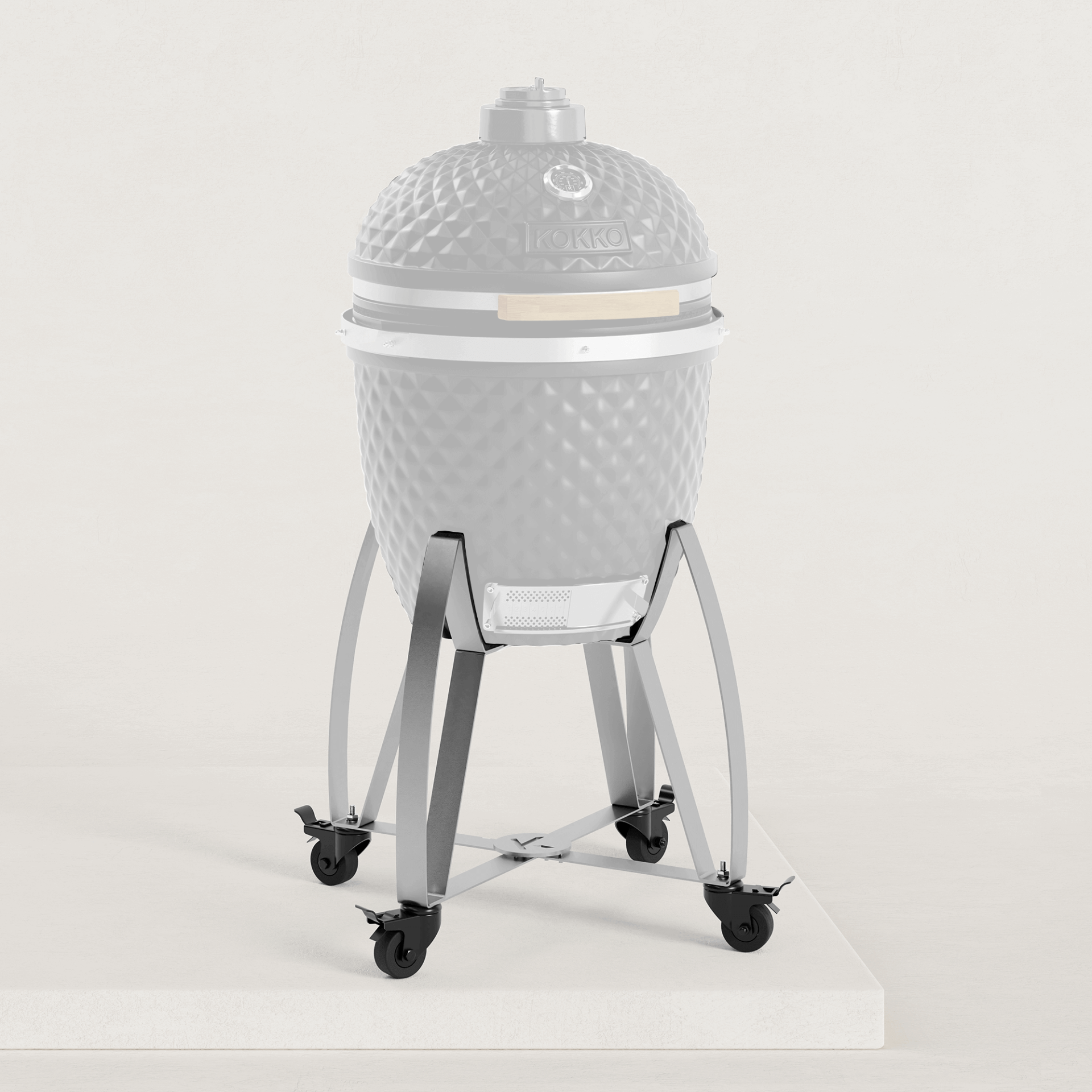 Le chariot en inox est monté sur 4 grosses roues qui permettent de déplacer le Kokko dans son jardin ou sur sa terrasse.